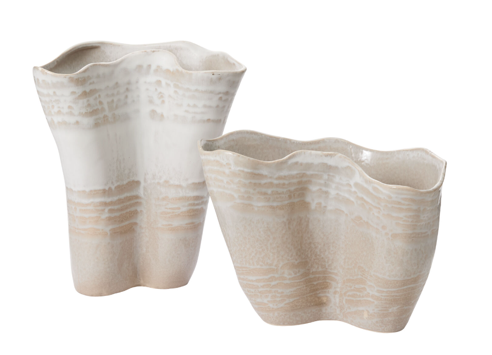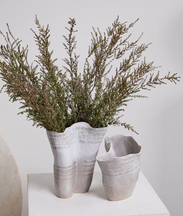 Bring a handcrafted look to florals with the wavy ceramic vase. Featuring a super organic shape with unique folds & surface texture, these unique vases are both sculptural decorative pieces & modern vessels for statement arrangements.